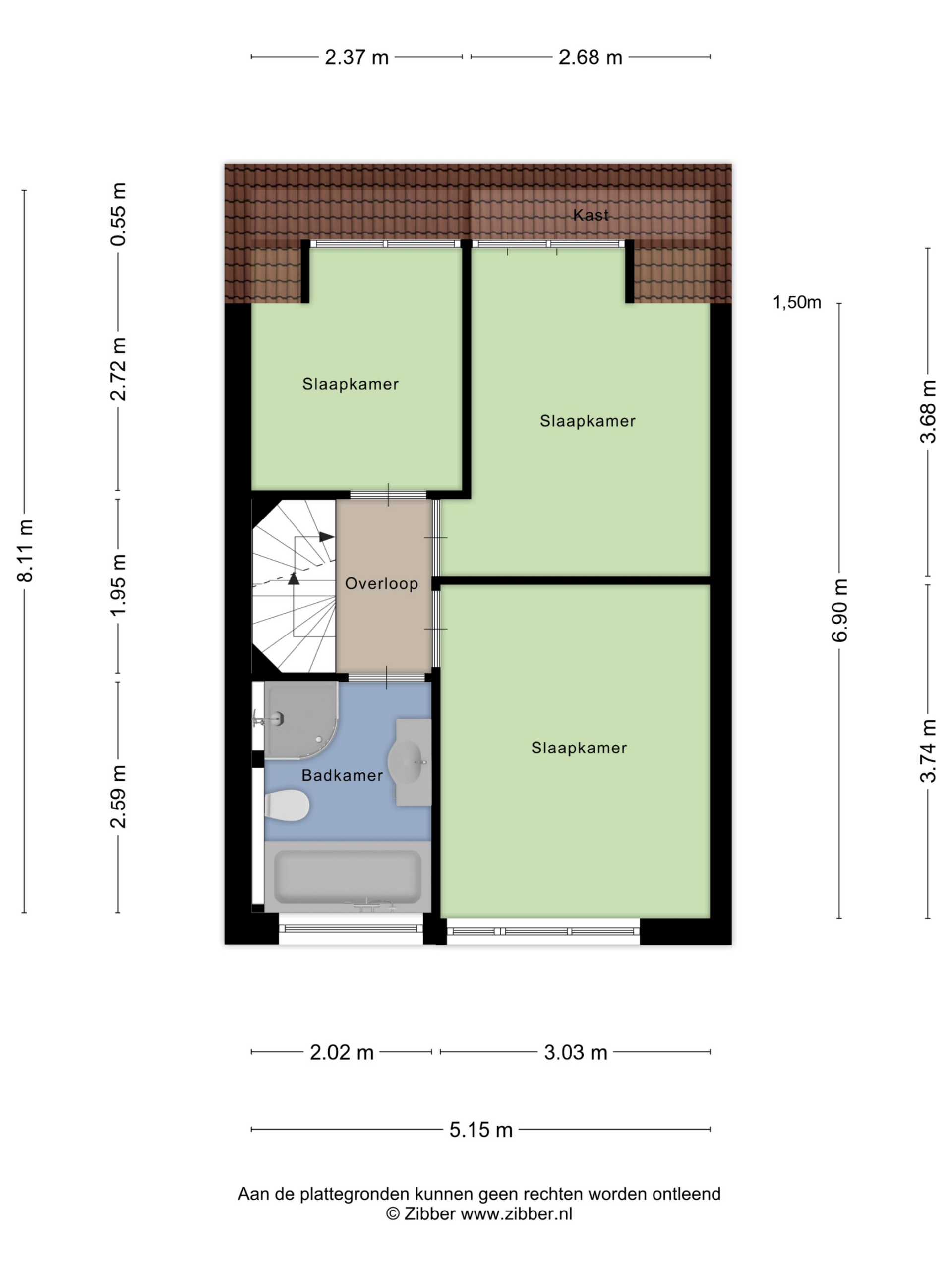 Slaapkamer 1 (voorzijde) is voorzien van rolluiken; slaapkamers 2 en 3 beschikken over een dakkapel en eveneens rolluiken. De slaapkamers zijn afgewerkt met vloerbedekking, structuurverf wandafwerking en spuitwerkplafonds.