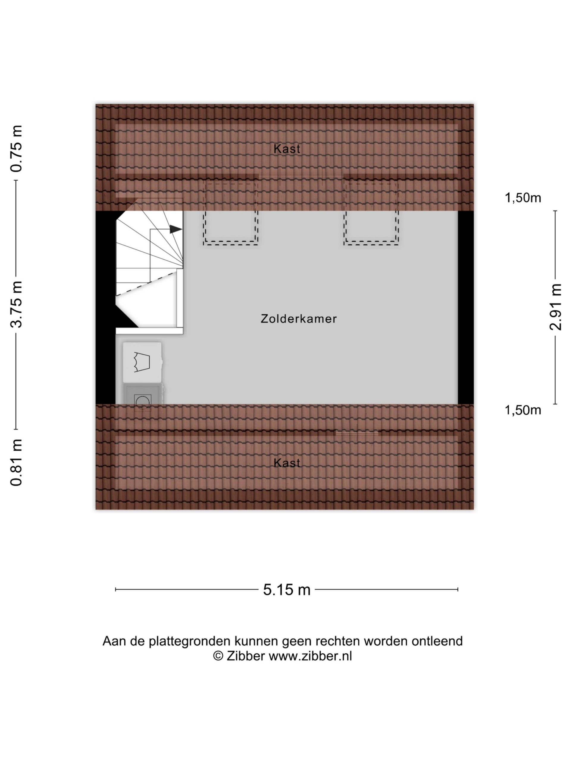 Open zolderruimte met opstelling voor wasmachine en droger. Dankzij twee dakvensters is er veel daglichtinval. Deze verdieping biedt goede mogelijkheden voor het realiseren van een extra slaap- of werkkamer.