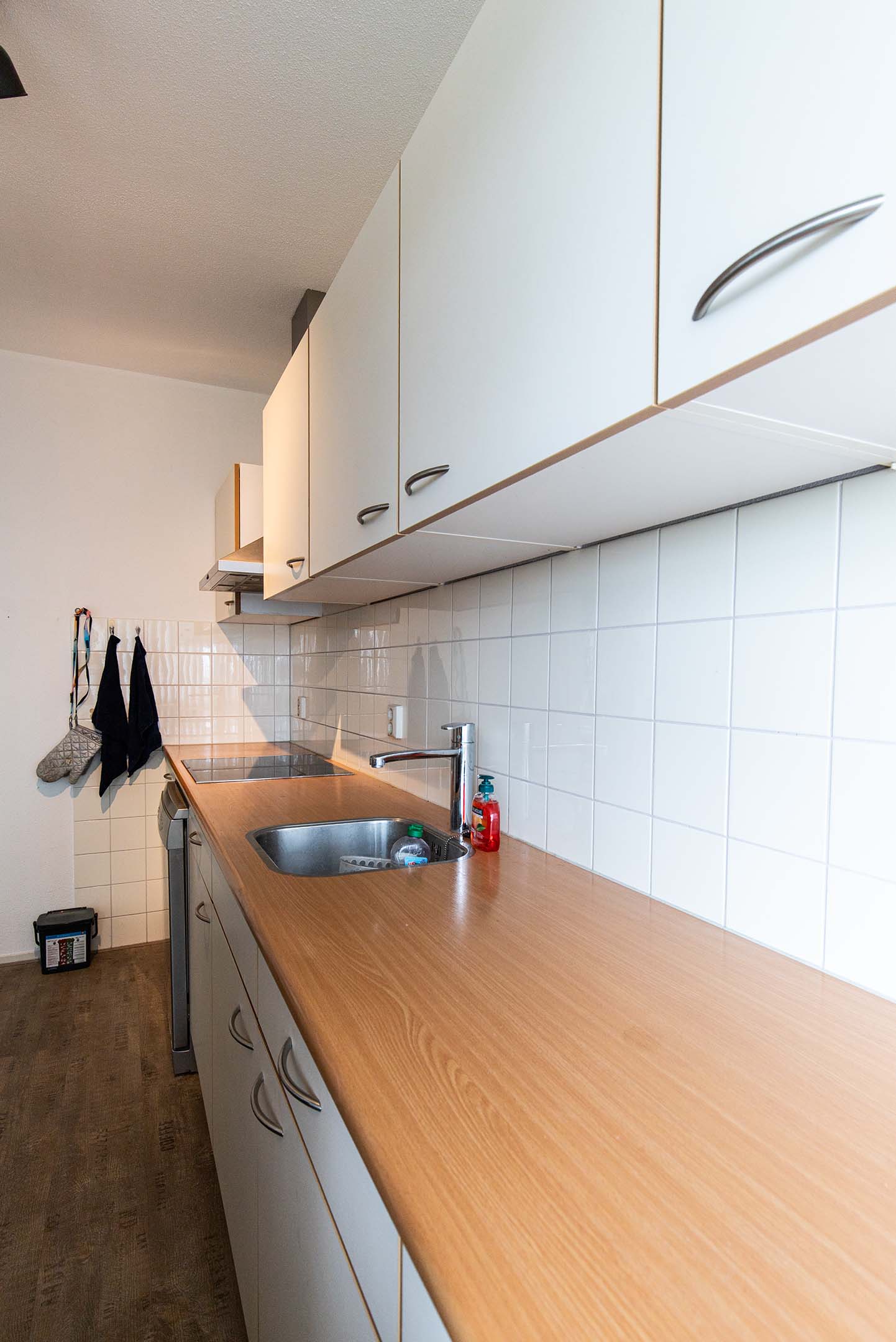 – Kunststof werkblad met spoelbak en betegelde achterwand
